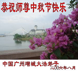 Tous les pratiquants de Falun Dafa des provinces du Zengcheng, Guangxi et Guangdong souhaitent à notre grand Maître un Joyeux Festival de la lune de la mi-automne !