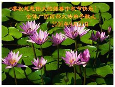 Tous les pratiquants de Falun Dafa de l’Ouest de la province du Guangxi souhaitent à notre grand Maître un Joyeux Festival de la lune de la mi-automne !