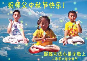 Les petits pratiquants de Falun Dafa de Xiaogang en Chine souhaitent au Maître un Joyeux Festival de la lune de la mi-automne !