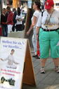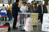 Au même moment le Premier Ministre chinois avec d’autres de ses ministres chinois visitait Hambourg. Les pratiquants allemands ont pensé que ce serait une bonne occasion pour attirer l’attention et la sympathie de la population allemande. Ils ont fait une simulation de certaines méthodes de torture que subissent les pratiquants du Falun Gong dans des camps de travail chinois et ont informé les gens que cela se passait réellement en Chine