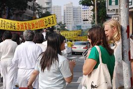 M. Cheng, un représentant des pratiquants de Falun Gong, a dit aux citoyens de Kaohsiung, « Le parti communiste chinois persécute les pratiquants de Falun Gong et d'autres groupes religieux. Il viole les droits de l'homme. Le crime des prélèvements d’organes sur des pratiquants de Falun Gong encore vivants par le PCC pour le profit, qui a été exposé au mois de mars passé, a choqué beaucoup de gens. Aujourd'hui, nous invitons toutes les personnes de conscience à se lever et à arrêter les crimes du PCC. »
