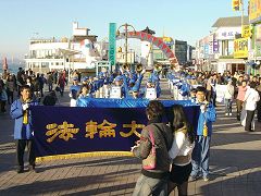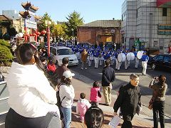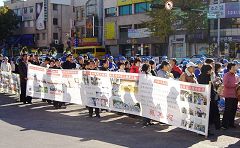 Dimanche 12 novembre 2006, les pratiquants de la Fanfare de la Terre Divine coréenne sont allés à « rue de la Chine » dans la ville d'Incheon sur l'île célèbre de Wolmi. Avec des bénévoles du Bureau pour démissionner du parti communiste chinois, ils ont clarifié la vérité, distribué des exemplaires des « Neuf commentaires sur le parti communiste » et exposé le crime du PCC de prélever les organes sur les pratiquants du Falun Gong.