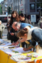 Il faisait doux et le soleil était de la partie. Parmi des foules de piétons de touristes et de gens faisant du shopping, les pratiquants de Falun Gong ont fait une simulation révélant les prélèvements d’organes sur des personnes vivantes, et ont mis en place une cage factice utilisée pour torturer les pratiquants de Falun Gong dans les prisons chinoise. Un grand nombre de gens s’est arrêté pour regarder. Les gens venaient les uns après les autres, prenaient un dépliant d’information et signaient un formulaire de pétition à envoyer à la Chancelière Merkel et qui condamnait le PCC.