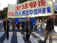 Un ralliement et un défilé pour soutenir les 15 millions de personnes qui ont démissionné du Parti communiste chinois (PCC) et de ses organisations affiliées ont eu lieu dimanche 12 novembre 2006 dans un parc près de la gare de Shibuya dans le district de Shibuya à Tokyo. Cette activité a été organisée conjointement par le Centre de service japonais pour quitter le PCC, La Grande Époque, NTDTV, et la radio internationale Son de l’espoir.