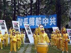 Le 11 novembre 2006, l'Alliance de Taïwan pour la démocratie et l'Alliance mondiale des droit de l'homme et globale pour démissionner du parti communiste chinois (PCC) ont organisé une conférence de presse intitulée « La vague de démission du parti communiste chinois -- l'effet de domino de 15 millions démissions » à la Plaza Harvard, sur le campus de l'université de Chung Hsing, dans la ville du Taichung. Les pratiquants de Falun Gong et d'autres qui ont été persécutés par le PCC, ont été invités à la conférence de presse.
