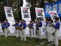 Les pratiquants de Falun Gong jouent pour soutenir la vague de démissions
