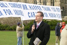 Dans une entrevue le 21 novembre 2006, Jason Kenney, député au Parlement, Président du Sous-comité des droits internationaux de la personne et secrétaire du Premier ministre, a déclaré qu'on ne doit pas s'inquiéter de parler en faveur des droits de l'homme et de liberté fondamentale. Il a dit que dans n'importe quel pays du monde, et pas seulement en Chine, les droits fondamentaux de la personne doivent être respectées.