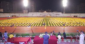 dans le stade de la ville de Taipei. Parmi plusieurs groupes, le Falun Gong a