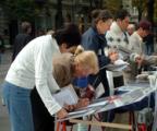 De nombreux passants sont allés directement signer la pétition. Beaucoup de gens demandaient aux pratiquants comment ils pouvaient offrir leur aide. Certains voulaient donner immédiatement de l’argent. Les pratiquants ont décliné les dons en les remerciant et ajoutant : » Afin que plus de gens puissent apprendre la vérité, vous pouvez écrire aux médias et au gouvernement afin qu’ils prêtent attention à la persécution. Tout ceci participera à faire cesser la persécution. » Beaucoup de gens ont accepté les documents de l’Association des Amis du Falun Gong.