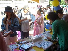 Deux Chinoises de la Chine continentale vendaient des cartes d’appel. L’une d’elles devait avoir été influencée par la propagande du PCC. Elle regardait le kiosque de Falun Gong, l’air hostile. Les pratiquants de Falun Gong sont allés causer avec elle et ils lui ont donné des dépliants et du matériel de clarification au sujet de « l’auto-immolation » sur la Place TianAnMen. En après midi, elle a salué les pratiquants de Falun Gong et elle les regardait avec beaucoup d’amabilité et de gentillesse. Elle décida même de quitter le PCC. C’était un changement drastique et un exemple de comment les choses peuvent aller au-delà de nos attentes quand la clarification de la vérité se déroule bien.
