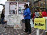 | Montrer son soutien en signant la pétition. | Les passants sont intéressés par l'activité. | Un pratiquant explique les faits à un passant. |