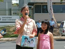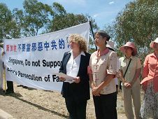 Le 7 décembre 2007, dans l'après-midi, les pratiquants de Sydney et Canberra ont organisé un rassemblement et une conférence de presse devant l'ambassade de Singapour en Australie afin de protester contre le verdict du gouvernement de Singapour, reconnaissant coupable deux pratiquants de Falun Gong. Ce verdict viole la constitution de Singapour, la législation de ce pays et les conventions internationales, tout simplement pour faire plaisir au parti communiste chinois (PCC). Les pratiquants australiens de Falun Gong ont demandé avec insistance au gouvernement de Singapour de rectifier ce cas de violation des droits de l'homme et de libérer immédiatement les deux pratiquants de Falun Gong innocents, Ng Chye Huay et Erh Boon Tiong.