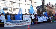 M. Mike Craig d’Amnesty International a organisé l’évènement. La dirigeante des Droits de l’Homme Ouighours, Rebiya Kadeer, le Membre du parlement Peggy Nash, David Cozac de l’Association canadienne des écrivains, et Sheng Xue, vice-président de la Ligue Démocratique, ont prononcé des discours au cours de la protestation.