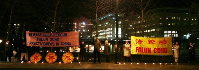 Le 10 décembre 2004 est le jour de la remise annuelle des prix Nobel et c’était en même temps la Journée Internationale des droits de l’homme. Quelques pratiquants de Falun Gong de Stockholm ainsi que d’autres villes alentours sont allés à Stadshus dans le centre de Stockholm afin de se joindre aux activités et pour attirer l’attention des gens sur la persécution du Falun Gong et le mépris des droits de l’homme du Parti communiste chinois (PCC).