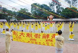 la présentation des cinq groupes d’exercices du Falun Gong. La scène était