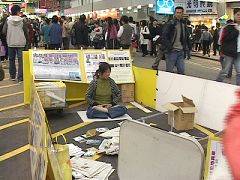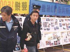 L'incident s’est produit sur la rue Sai Yeung Choi de Wang Cheong. Un Chinois dans la trentaine a tout à coup fait irruption au stand du bureau mondial pour démissionner du PCC. Il a jeté les brochures et les DVD par terre avec des coups de pied. Lorsque Mme Shi Shiming, une pratiquante de Falun Gong l’a chassé, il l’a frappée et blessée.