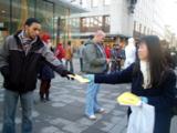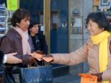 Lorsque le défilé est apparu dans la rue, la résonnance des tambours, a capté l'attention et les gens sont venus voir ce qui se passait. Ils ont regardé le défilé, posé des questions et pris l'information avec le sourire.