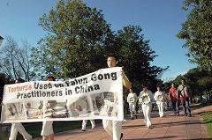 Pendant le défilé, les pratiquants ont porté des banderoles pour exposer la persécution par le Parti communiste chinois(PCC) et les atrocités du prélèvement d’organes. Ils ont montré aussi de grandes photos de pratiquants persécutés ou torturés à mort en Chine. Les pratiquants ont également mis en scène une petite saynète pour illustrer l'atrocité du PCC qui prélève des organes sur des pratiquants de Falun Gong vivants. Quelques spectateurs ont été émus aux larmes. En plus du groupe représentant le Falun Gong, une autre partie du défilé représentait les personnes soutenant les démissions du Parti communiste chinois et de ses organismes affiliés.
