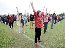 Pendant la pause de midi, les pratiquants ont fait les exercices. Quelques personnes ordinaires les ont également appris.