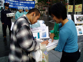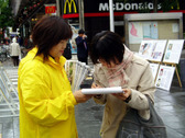 Le 26 novembre 2006, les pratiquants ont tenu un rassemblement dans un quartier commercial affairé de la ville de Shizuoka pour protester contre la persécution du Falun Gong par le Parti communiste chinois. Il y a eu une simulation des prélèvements d’organes pratiqués par le Parti communiste chinois sur des pratiquants de Falun Gong de leur vivant, afin d’éveiller les consciences et collecter des signatures pour soutenir le lancement d’une enquête internationale sur ces atrocités.