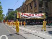Les participants du défilé incluaient divers groupes dans leur costume traditionnel, des chars allégoriques colorés, des musiciens et des troupes de danse. Le gouverneur et d'autres fonctionnaires du gouvernement ont pris place sur la tribune pour regarder le défilé. Plusieurs maîtres de cérémonie ont présenté chaque groupe des participants du défilé, l'un après l'autre, quand ils passaient devant la tribune. Quand le groupe de Falun Gong est arrivé, un maître de la cérémonie a vu la banderole « Vérité-Compassion-Tolérance » et il a dit : « Voici le cortège de la 'Vérité-Compassion-Tolérance.' Leur sourire reflète les principes dans lesquels ils croient. Le ‘Vérité-Compassion-Tolérance’ est bon pour tous. »