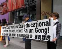 (Minghui.org) Le 7 février 2006, cinq pratiquants canadiens de Falun Gong qui ont travaillé ou étudié dans le système éducatif chinois, ont intenté une poursuite judiciaire auprès de la cour suprême de la Colombie Britannique, contre Chen Zhili, membre du Conseil d'état de Chine. Chen Zhili, partisane inébranlable de l'ancien président chinois Jiang Zemin, a été accusée du crime de torture et de crimes contre l'humanité. La cour a livré la citation à Chen. C'est la deuxième fois que Chen est poursuivie depuis le 19 juillet 2004, quand elle a été accusée et appelée à la cour en Tanzanie, pour "avoir commis des crimes de torture et tué des pratiquants de Falun Gong dans le système éducatif chinois." Le 7 février, quand Chen Zhili visite l'école Confucius de l'institut technologique de Colombie Britannique (BCIT), les pratiquants de Falun Gong manifestent dans la rue avec des banderoles Les cinq pratiquants canadiens qui poursuivent Chen, sont Zhang Kunlun, Jin Rong, Liu Wenyu, Zhu Ying et Fuo Zhaoxia. Le 8 février, la cour a livré, en personne, la citation à Chen Zhili. Le 7 février, pendant la manifestation pacifique, les pratiquants ont déployé des banderoles sur lesquelles on pouvait lire, "Arrêtez de persécuter le Falun Gong" et "Chen Zhili a forcé le système éducatif à persécuter le Falun Gong! - Le crime est indéniable," alors que Chen Zhili assistait à la cérémonie d'inauguration de l'école Confucius de BCIT Chen Zhili a activement appliqué la politique de Jiang pour supprimer le Falun Gong pendant son mandat en tant que ministre de l'éducation. Elle a imposé la propagande calomnieuse contre le Falun Gong dans le système éducatif. Depuis les écoles primaires jusqu’aux universités, on oblige les étudiants à signer leur nom contre le Falun Gong et la propagande a empoisonné les esprits de la jeunesse chinoise. Dans le cadre des politiques de persécution, pendant l’année 2003, il y a eu au moins 435 pratiquants de 210 universités ou lycées qui ont été envoyés de force dans des classes de lavage de cerveau, des camps de travaux forcés ou des hôpitaux psychiatriques, pour subir une persécution brutale. Selon des sources officieuses, au 29 janvier 2006, environ 150 professeurs et étudiants ont été persécutés à mort en Chine. De tels cas se sont produits dans tout le pays.