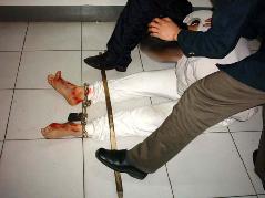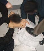 Le 3 octobre 2000, ces policiers ont massacré plusieurs pratiquants :Zhong Hengjie, pratiquant de Falun Gong du district de Tiexi a été sauvagement tué par la police; en septembre 2004, Gao Lianyi a été assassiné; le 1er septembre 2005, Ren Shujie a également été assassiné. En outre, Zhang Xianting, Li Shuzhen, Jiang Shumei, Dong Yanyuan, Jing Suo, Li Guanghao et Sun Shiyou ont également souffert de différentes tortures aux mains des bourreaux de l’Équipe de sécurité nationale de Tiexi. Le 13 janvier 2002, la pratiquante Li Weixun du district de Tiexi a été emmenée au commissariat de police de Lingkong, en violation avec la Constitution chinoise. Pour protester contre la persécution, Li Weixun a refusé de répondre aux questions demandées et a commencé une grève de la faim. La police l’a battue à la tête et au visage et on lui a également menotté les bras au dos d’une chaise. Un policier a écrasé ses orteils avec ses gros souliers, lui a donné des coups de pied et l’a frappée sur les jambes avec une barre de fer. Deux policiers du Département de la police de Tiexi ont également torturé Mme Li. L'un d'entre eux s'est vanté, « Je suis celui qui a tué Zhong Hengjie ! » Ils l’ont giflée à plusieurs reprises. En février 2002, la police et la cour en l’absence de Li Weixun l’ont condamnée à 16 ans de prison. Le 6 mars 2005 vers 3h00 du matin, les agents de l'Équipe de sécurité nationale de Tiexi et de la branche de la sécurité nationale du département de police de ville de Shenyang ont illégalement arrêté plusieurs pratiquants de Falun Gong, y compris Gao Rongrong. Les policiers impliqués sont le chef de division Zhang, le chef de la division No 1 Li Shuwen, le Directeur politique Feng Deli, le chef adjoint de division Wang Anyu, et les policiers Yang Hai, Zheng Zhiguo et Li Qiang. Ci-dessous des photos de reconstitution des mesures utilisées par la police de Shenyang pour torturer les pratiquants de Falun Dafa 1. Passages à tabac 3. Piétiner et se tenir debout sur les pieds des gens 6. Rouler un bâton dur sur la partie inférieure des jambes 8. Torture en utilisant un casque de moto 9. Transpercer les doigts avec des aiguilles Adresse de l’Équipe de sécurité nationale de Shenyang du district de Tiexi 42 Xinghua rue Sud, district de Tiexi, ville de Shenyang,