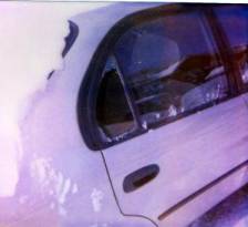 La fenêtre arrière du passager était brisée