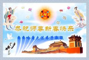 Les pratiquants de Cité de Jiamusi de l’ouest, Province de Heilongjiang souhaitent au Grand et Compatissant Maître, une Bonne et Heureuse Année!