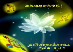 Tous les pratiquants de Yutai, Province de Shandong, respectueusement souhaitent au Maître Heureuse Nouvelle Année au Maître! Vous avec travaillé si fort!