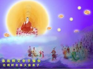 Sur le chemin de la validation de Dafa, nous vous remercions vénéré Maître pour votre sérieux enseignement et votre bienveillant salut infini. Nous prenons la résolution de prendre la Loi comme Maître en cette nouvelle année, de maintenir la pensée droite, la croyance droite et les actions droites, et de nous améliorer comme un tout. Nous serons encore plus diligents et aiderons le Maître à sauver tous ces êtres vivants qui peuvent être sauvés.