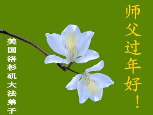 Les pratiquants qui sont venus aux Etats-Unis de Chine continentale souhaitent respectueusement une bonne année au vénéré Maître !