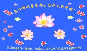 Tous les pratiquants Falun Dafa de Pékin incluant les districts de Tongzhou, Chaoyang, Dongcheng et de Changping souhaitent respectueusement une Bonne et Heureuse Année au grand Maître bienveillant