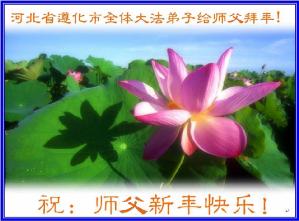 Les pratiquants de la ville de Qian-an, province de Hebei souhaitent respectueusement une Bonne et Heureuse Année Chinoise au grand Maître bienveillant !