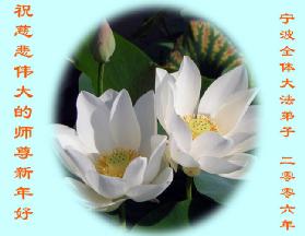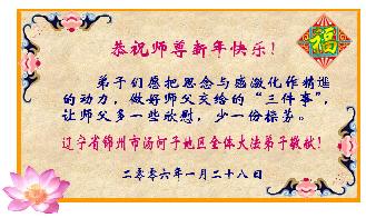 Tous les pratiquants de la région de Tanghezi, ville de Jinzhou, province de Liaoning souhaitent respectueusement une Bonne et Heureuse Année au vénérable Maître