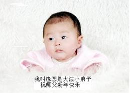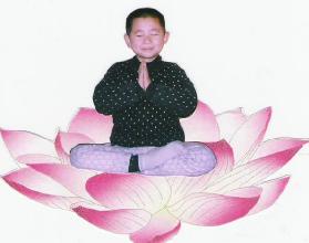 Les mots sur la photo: Je suisYuanyuan, un petit disciple de Dafa, et je souhaite au Maître, une Heureuse Nouvelle Année!