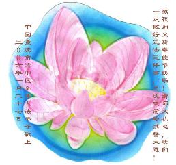 Au nom de tous les pratiquants qui sont illégalement détenus dans la prison de Chongqing, je souhaite avec respect une Bonne et Heureuse Année Chinoise au Grand Maître Bienveillant !