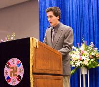 Le premier orateur était un disciple de Dafa de Taiwan. Il a partagé comment il était initialement très strict avec lui-même dans sa cultivation, en suivant Maître et en faisant la rectification de la loi, mais l’année dernière, il a commencé à relâcher, par exemple, au début de sa cultivation, il finissait définitivement les cinq séries d’exercices chaque jour, mais pour les quelques dernières années, il a régulièrement omis d’aller au site d’exercices le matin, utilisant l’excuse qu’il était resté réveillé la nuit précédente pour clarifier la vérité. Parfois, il manquait les exercices du matin et les heures établies pour envoyer la pensée droite parce qu’il ne se réveillait pas à temps. De plus, il avait passé une longue période de temps à faire du travail de Dafa en face de son ordinateur et quand venait le temps d’envoyer la pensée droite, spécialement les cinq premières minutes, souvent il ne pouvait pas arrêter son travail sur-le-champ et ne pouvait pas se calmer l’esprit en étudiant la Loi (Fa).
