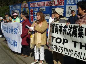 Les pratiquants ont aussi lu une annonce de « l’Organisation Mondiale enquêtant sur la persécution du Falun Gong » (WOIPFG). L’annonce demandait à toutes les personnes au courrant de fournir une liste de chacune des unités de travail et chacun des groupes d’individus impliqués dans la torture et les meurtres des pratiquants du camp de concentration de Sujiatun.