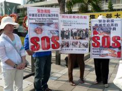 Il y a avait plusieurs panneaux d’affiches avec les mots : « SOS Secours urgent pour les pratiquants du Falun Gong qui sont persécutés» et une grande banderole portant des mots condamnant le PCC pour ces crimes haineux. Plusieurs personnes se sont arrêtées pour regarder et se sont sentis indignés.