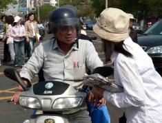 Les gens arrêtent pour prendre des documents démasquant le PCC.