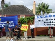 Les pratiquants à Sydney font appel aux chefs des États-Unis, de l'Australie et du Japon qui participaient à un dialogue trilatéral, d’enquêter immédiatement les crimes effroyables et outrageux, commis dans le camp de concentration de Sujiatun. Le camp qui a détenu 6.000 pratiquants de Falun Gong, prélève leurs organes corporels quand ils sont encore vivants et puis incinère leur corps pour dissimuler la preuve. La protestation a attiré l'attention de beaucoup médias. Les photographes ont enregistré la protestation et SBS TV a fait un reportage sur place. La protestation a eu lieu le 18 mars 2006.