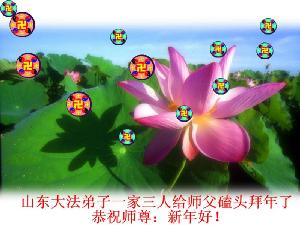 Une famille de Falun Dafa de trois personnes de la province du Shangdong souhaitent avec respect une Bonne et Heureuse Année au grand Maître bienveillant!