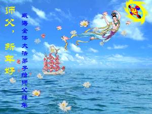 Tous les pratiquants de Falun Dafa de Weihai, province du Shandong souhaitent avec respect une Bonne et Heureuse Année au grand Maître bienveillant!