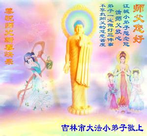 Tous les petits pratiquants de Falun Dafa de Jilin, province du Jilin souhaitent avec respect une Bonne et Heureuse Année au grand Maître bienveillant!