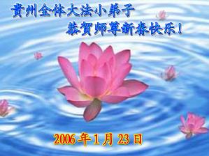Tous les pratiquants de Falun Dafa de la province du Guizhou souhaitent avec respect une Bonne et Heureuse Année au grand Maître bienveillant!