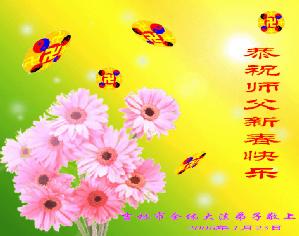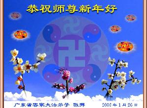 Tous les pratiquants de Falun Dafa de Guangzhou souhaitent avec respect une Bonne et Heureuse Année au grand Maître bienveillant!
