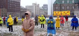 Le 4 avril, l'Association canadienne de Falun Dafa a tenu une conférence de presse au Parlement canadien pour fournir aux médias canadiens les preuves de La Grande Époque et du WOIPFG.