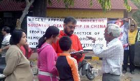 Le 5 mars 2006, les pratiquants de New Delhi, la capitale de l’Inde, ont organisé des manifestations pacifiques dans plusieurs endroits pour dénoncer les crimes du PCC au camp de concentration de Sujiatun, La première manifestation a été organisée à Bahadur Shah route de Zafar où les bureaux de plusieurs médias sont localisés, la deuxième dans un district d’affaires très occupé de la Place du Connaught et la troisième dans les Lodhi Gardens, où un grand nombre de personnes viennent y marcher le matin.