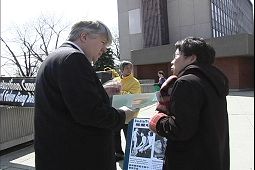 Les pratiquants du Canada ont diffusé les faits de la persécution par divers moyens et invitent instamment la communauté internationale à faire des enquêtes dans tous les camps de travail, les prisons, et les camps de concentration en Chine, et à mettre fin à l'emprisonnement illégal et la persécution des pratiquants du Falun Gong par le PCC.